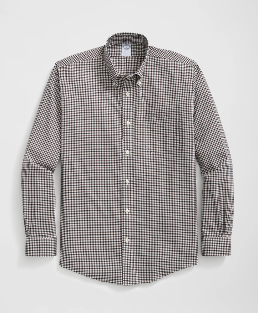 Stretch Supima® Cotton Non-Iron Twill Polo Button Down Collar Checked Shirt