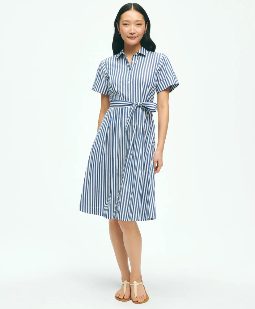 Striped Belted Shirt Dress In Cotton