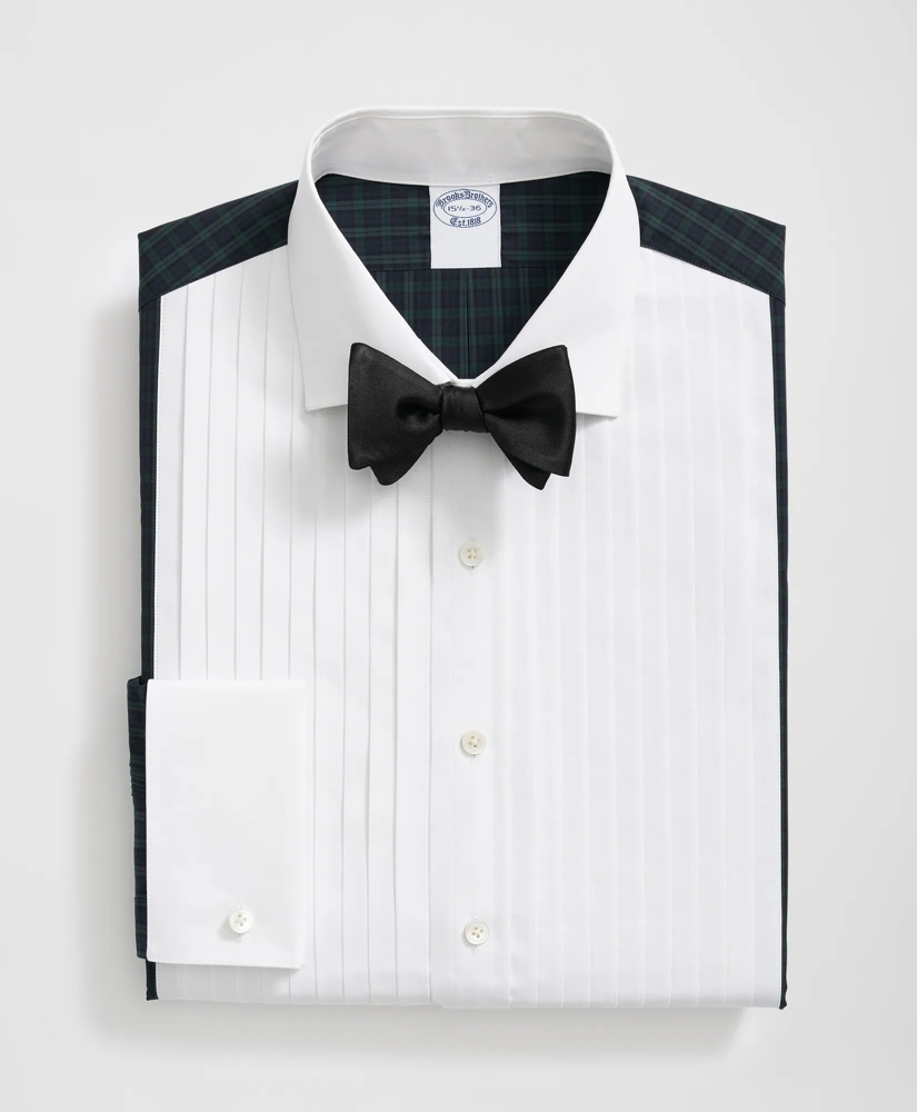 Our tuxedo shirt is crafted from fine 2-ply 120s Supima® cotton in a Black Watch pattern with a contrast 10-pleat front, English 5.5" spread collar and French cuffs. We finished the piece with removable mother-of-pearl buttons for the elevated style and quality you'll only find here.