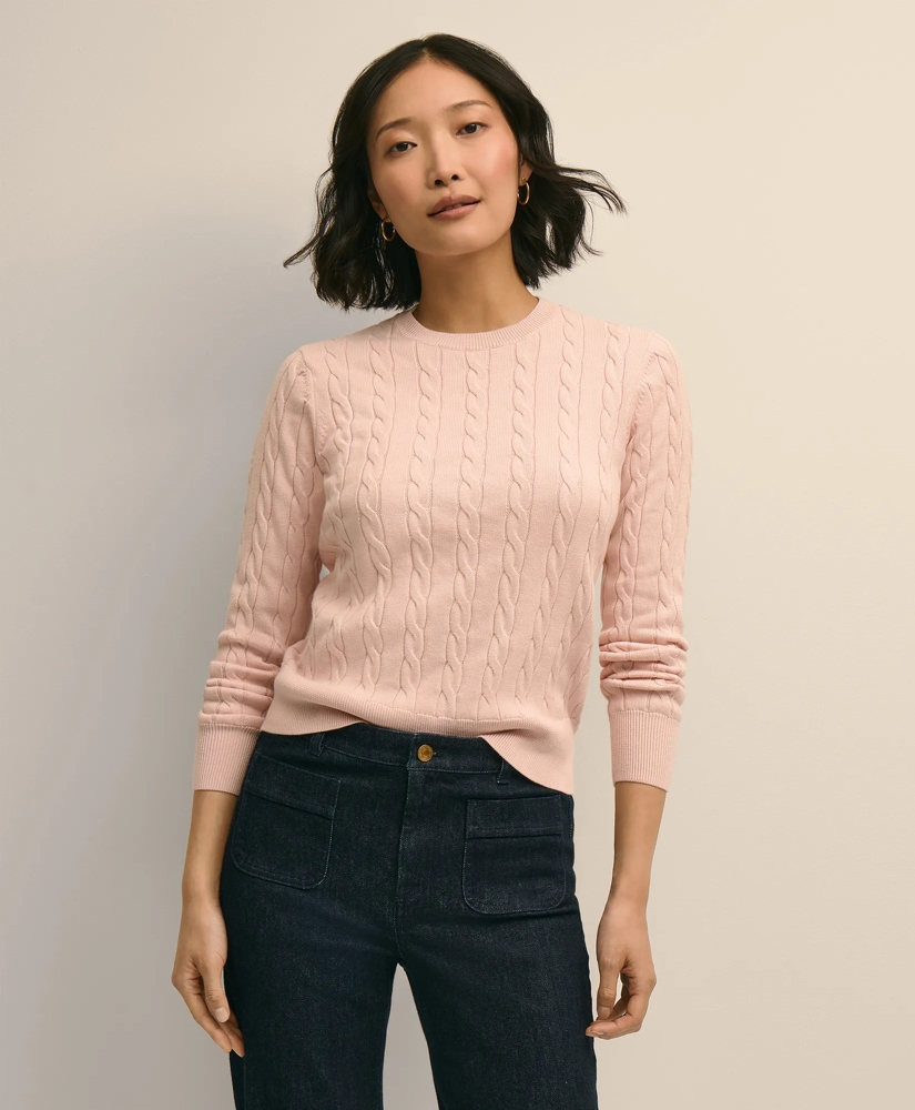 Our classic cable crewneck made from the world's finest Supima® cotton features an enhanced sumptuous handfeel, beautiful color, and the perfect weight to wear on its own or layer for a must-have seasonless piece.