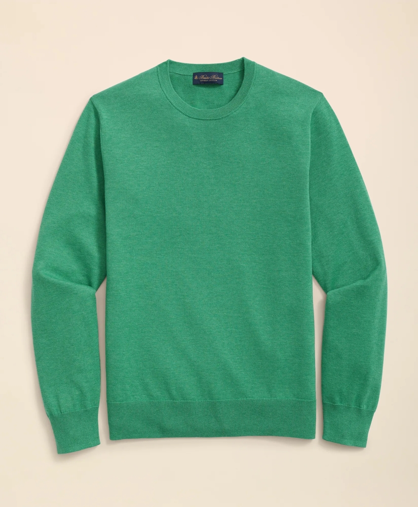 We've improved our Supima® cotton with finer yarn count and gauge for year-round wear. Not only does it look and feel better, but it wears better over time. These updates, along with a tighter tension and finer-gauge construction, have perfected our classic crewneck for seasonless style. Ribbed neck, cuffs and hem.