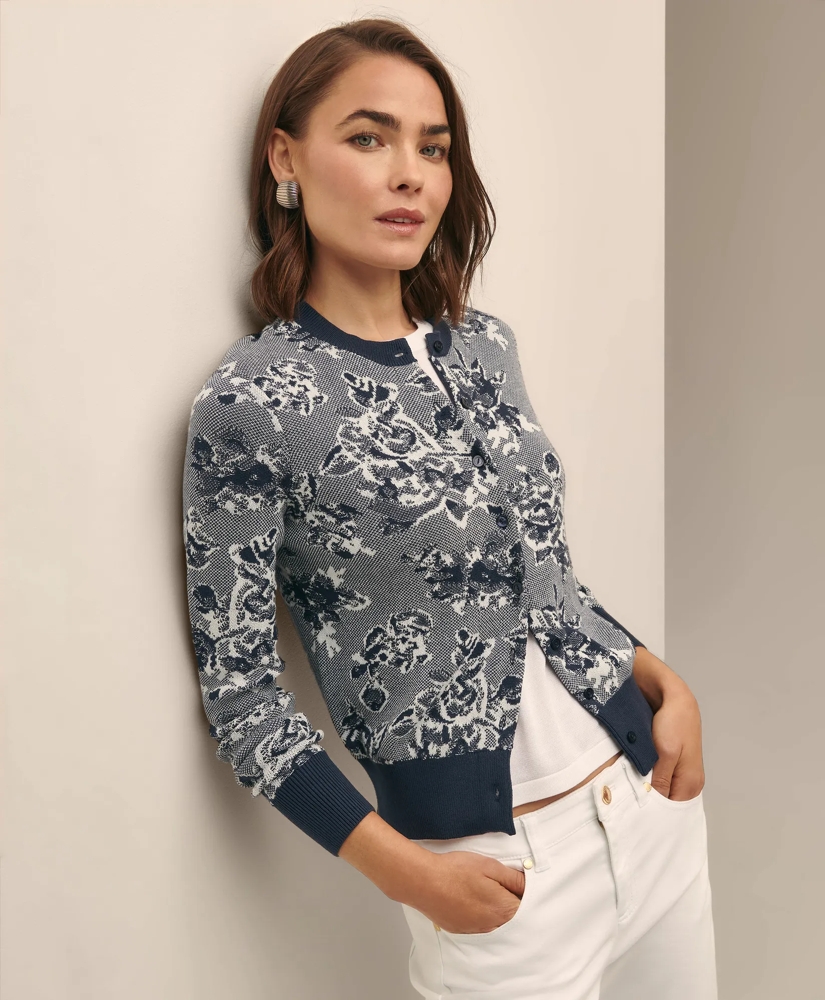 Supima® Cotton Floral Motif Cardigan