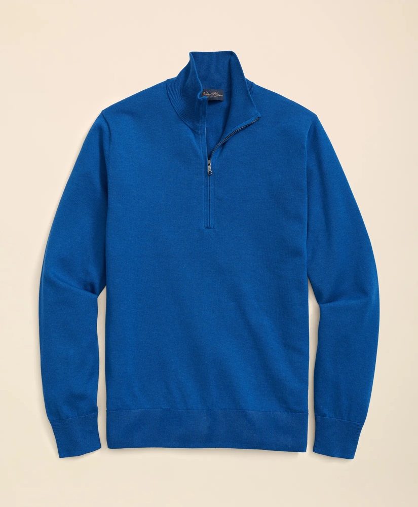 We've improved our Supima® cotton with finer yarn count and gauge for year-round wear. Not only does it look and feel better, but it wears better over time. These updates, along with a tighter tension and finer-gauge construction, have perfected our classic quarter-zip for seasonless style. Ribbed neck, cuffs and hem.