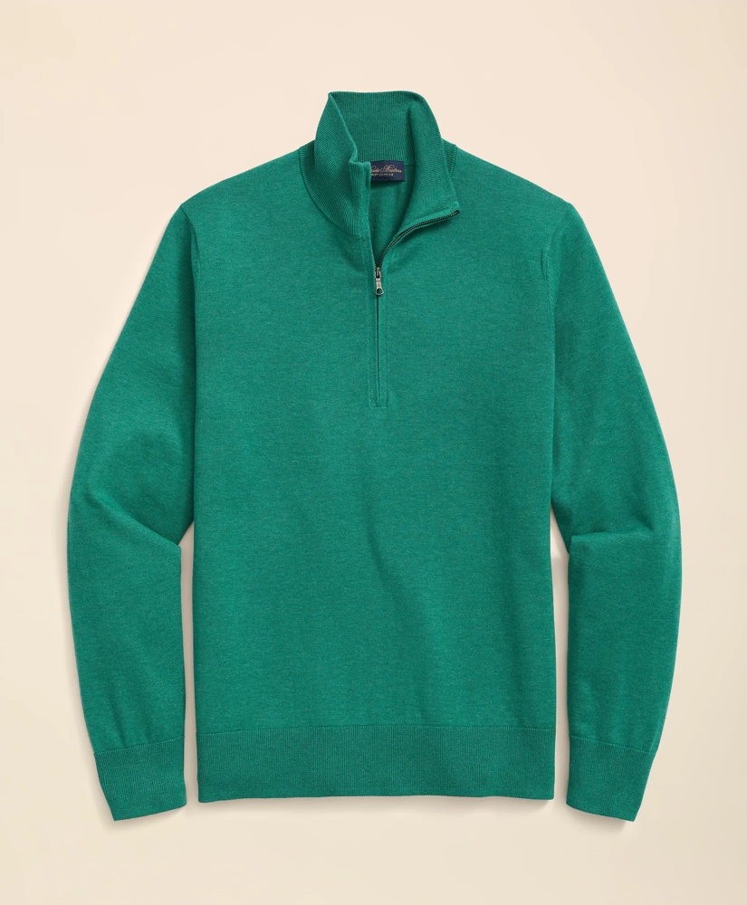 We've improved our Supima® cotton with finer yarn count and gauge for year-round wear. Not only does it look and feel better, but it wears better over time. These updates, along with a tighter tension and finer-gauge construction, have perfected our classic quarter-zip for seasonless style. Ribbed neck, cuffs and hem.