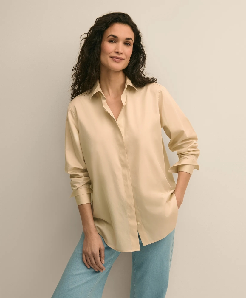 Refresh your shirt wardrobe with this go-to resort-season style that's endlessly versatile. Crafted from the world's finest cotton, it wears beautifully at work with trousers, or with jeans for a casual-effortless effect. Throw it on over a tank and leave open on tropical vacation strolls. Style it as a top layer, draped over your shoulders, and tie the ends at your waist for a timeless-prep look.