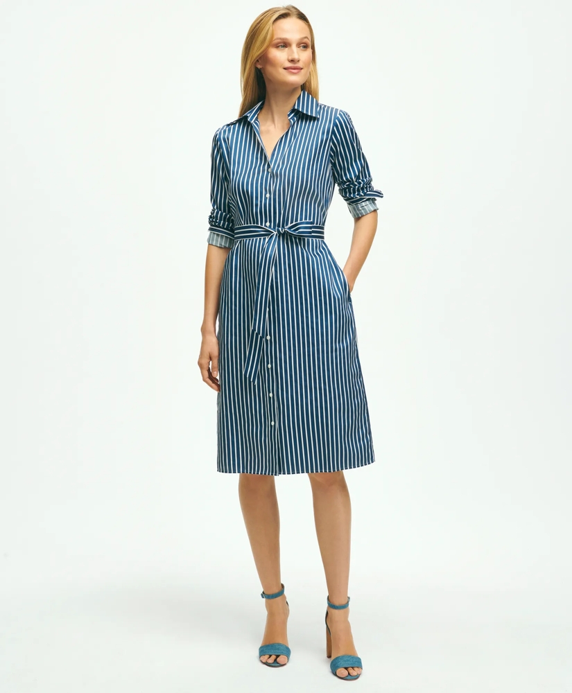 Supima® Cotton Stretch Sateen Belted Shirt Dress