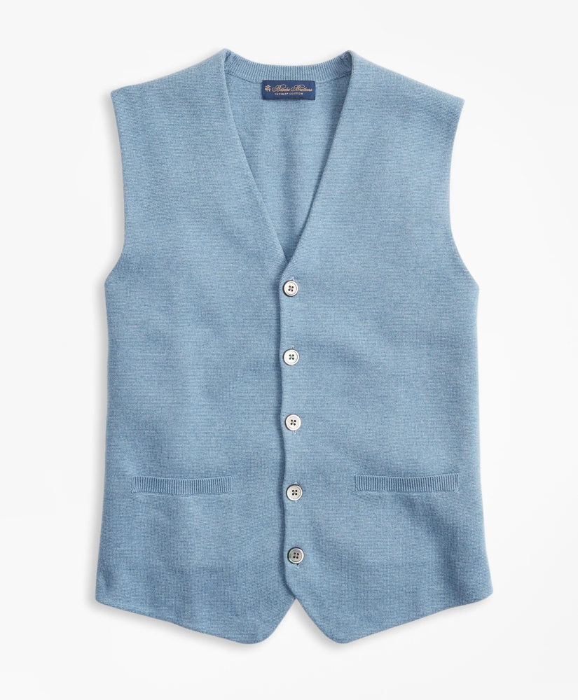 Inspired by the global marketplace, our design team decided to create a new version of our popular waistcoat. You get all the comfort of your favorite sweater with the aesthetic of a tailored item. Our fully fashioned option is made with our new compact Supima® cotton yarn and is finished with Tahitian mother-of-pearl buttons crafted in Italy for a refined finishing touch. Machine wash according to care instructions for best results. Imported.