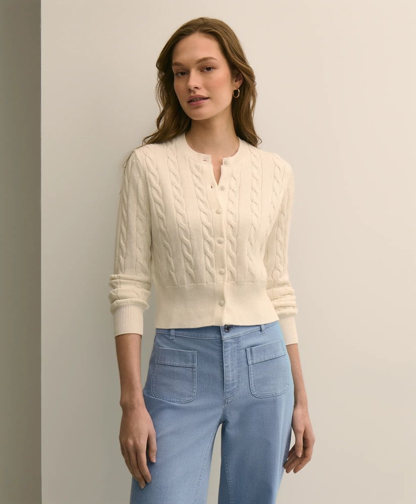 Supima® Cotton Twinset Cropped Cable Cardigan