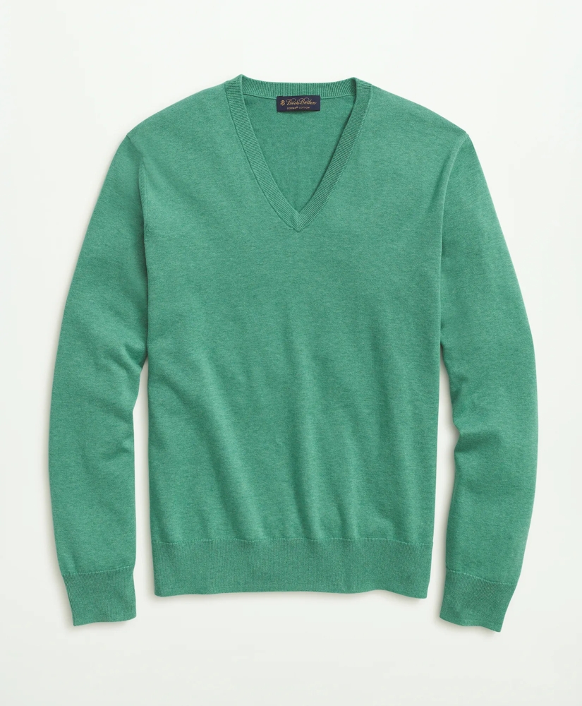 We've improved our Supima® cotton with finer yarn count and gauge for year-round wear. Not only does it look and feel better, but it wears better over time. These updates, along with a tighter tension and finer-gauge construction, have perfected our classic v-neck for seasonless style. Ribbed neck, cuffs and hem
