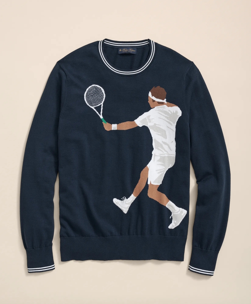 As a longstanding partner of the Tennis Hall of Fame, our label and this classic sport go together like your favorite doubles team. Our spring-forward sweater features an intarsia player serving new-classic style. Made from Supima®, the world's finest long-staple cotton, it's going to be a new sporty staple.