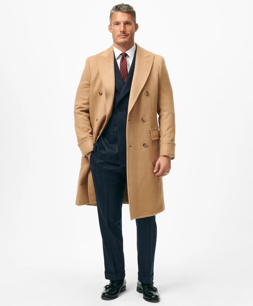 100% camel hair woven by Italy's renowned Lanificio di Tollegno is beautifully constructed into a versatile polo coat with dressed-up peak lapels, a classic double-breasted silhouette and adjustable back belt. We finished the look with beautiful pick stitching that marks elevated attention to detail.