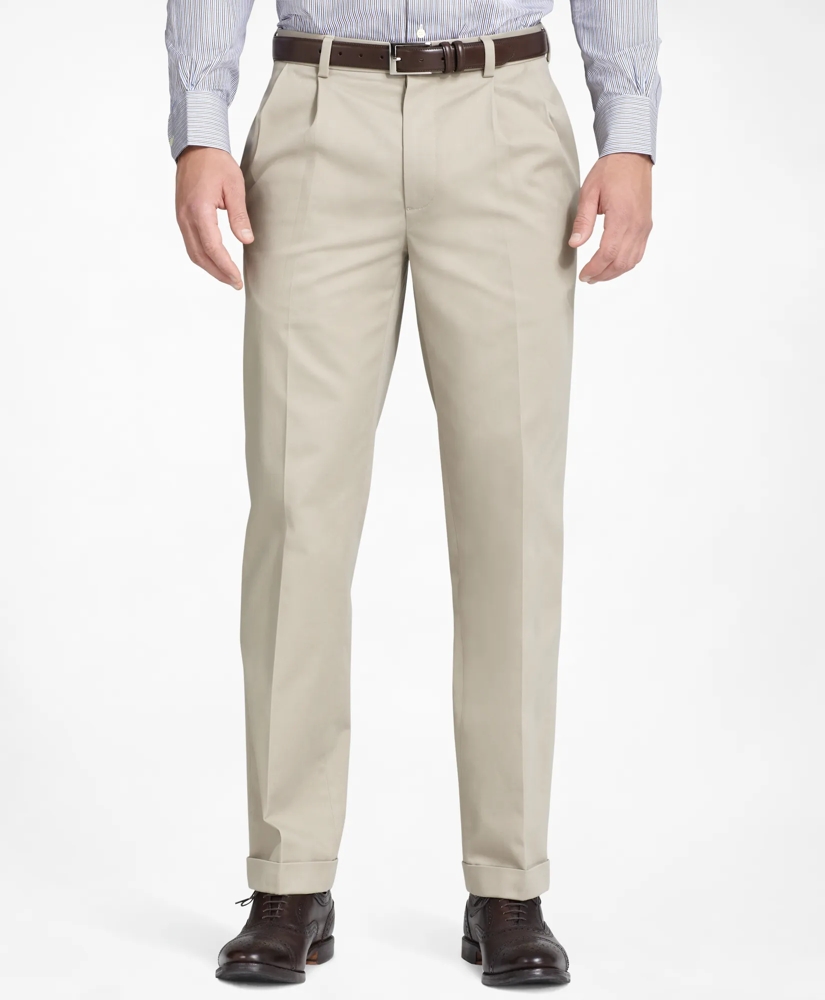 Our high-performance chinos in specially-treated pure cotton resist wrinkles for easy care while an enzyme-wash provides superior softness and comfort. Features on-seam pockets and back welt pockets. Thompson fit has a pleat front, sits below the natural waist, is straight through the hip and thigh and is cuffed. Machine wash. Imported.