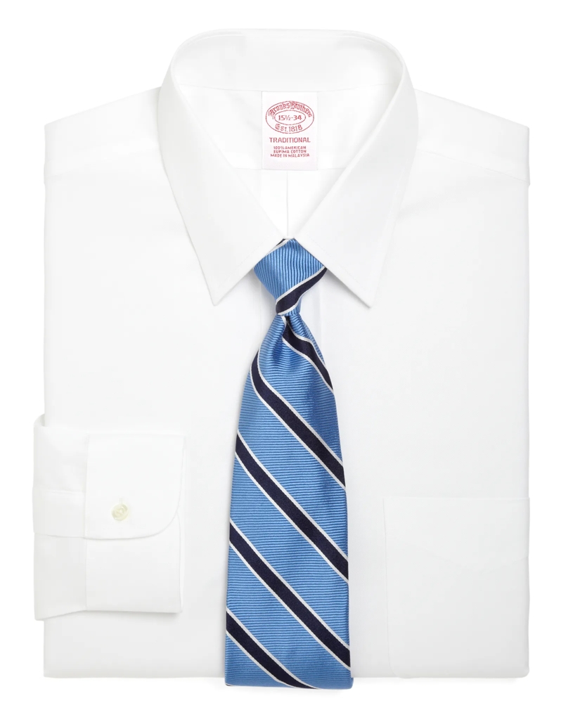 This dress shirt is crafted from pure American-grown Supima® cotton pinpoint for an unmatched comfort that has kept Brooks Brothers the foremost authority on fine men's dress shirts for nearly two centuries. Finished with the versatile forward point collar to ensure a professional look. Our signature 6-Pleat Shirring® at the barrel cuffs and pucker-free seams reinforce Brooks Brothers' dedication to a well-made dress shirt. Additional features include a left chest pocket and a center back pleat. This shirt is machine washable for easy care. Imported.
