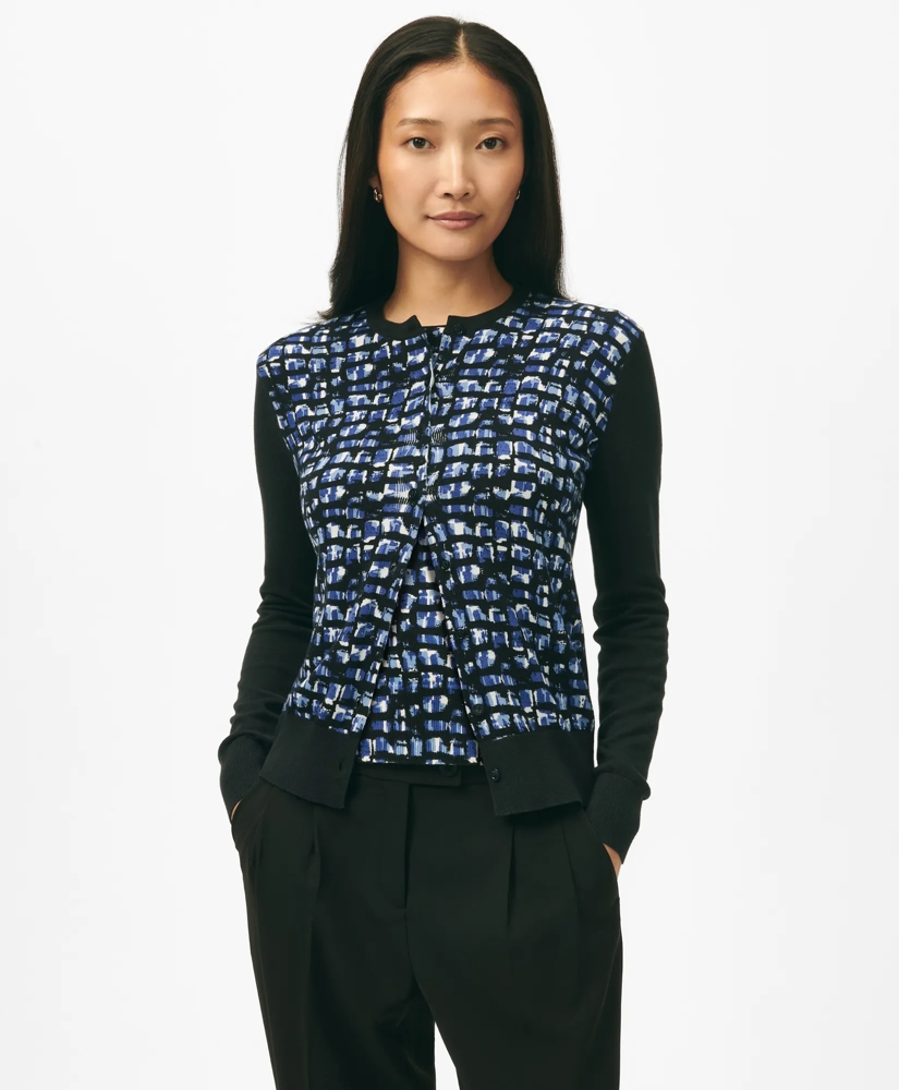 In one of our signature prints of the season, inspired by 1980s New York City art world and gallery culture, this cardigan is perfect for office polish and dinner sophistication alike.