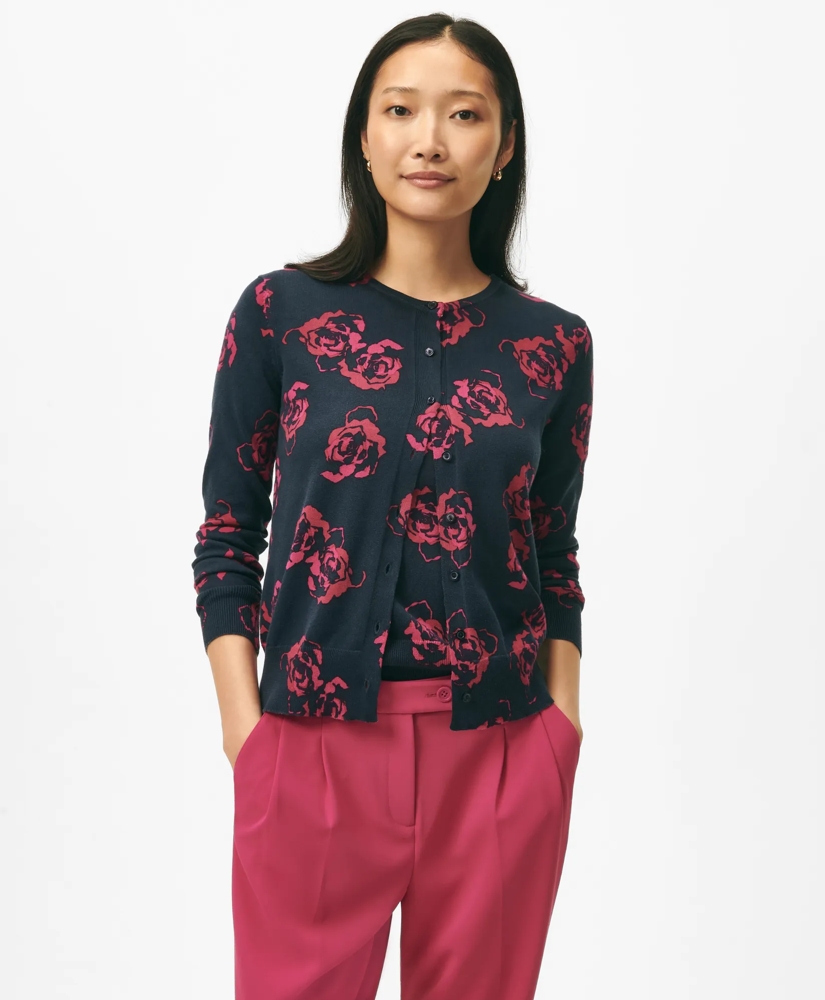 All the pretty roses are knit into our twinset cardigan for a standout seasonal piece that'll become one of your new favorites. Soft, pure cotton jersey makes it an ideal transitional layer, with beautiful authentic shell buttons. Pair with our matching shell for a full look.