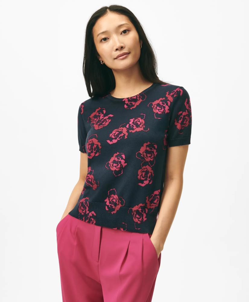 All the pretty roses are knit into our twinset shell for a standout seasonal piece that'll become one of your new favorites. Soft, pure cotton jersey makes it an ideal transitional layer that takes you from summer to fall in effortless style. Pair with our matching cardigan for a full look.