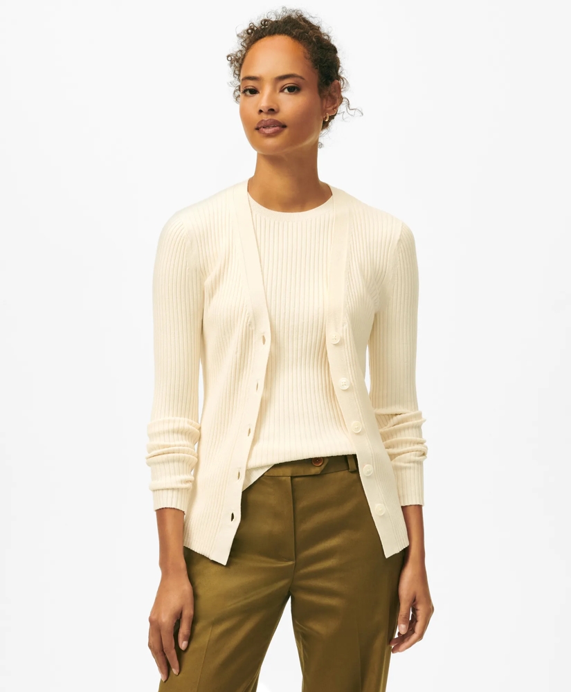 The cardigan is a wardrobe staple, worn over crisp button-downs and drapey blouses alike. We elevated this basic with a luxurious silk blend and fine ribs that add textural interest to whatever you pair it with. Enjoy the so-soft handfeel and subtle luster that comes with quality and elevated style. Complete the look with our matching shell.