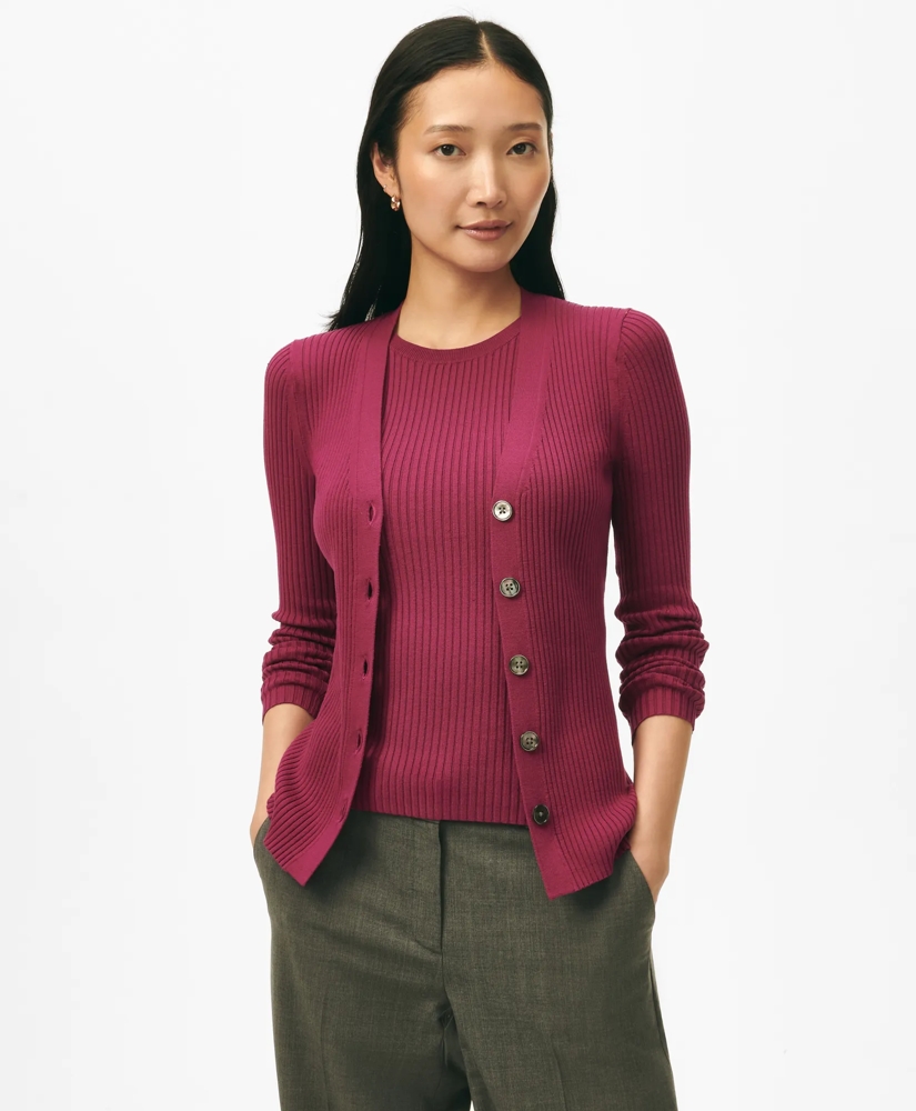 The cardigan is a wardrobe staple, worn over crisp button-downs and drapey blouses alike. We elevated this basic with a luxurious silk blend and fine ribs that add textural interest to whatever you pair it with. Enjoy the so-soft handfeel and subtle luster that comes with quality and elevated style. Complete the look with our matching shell.