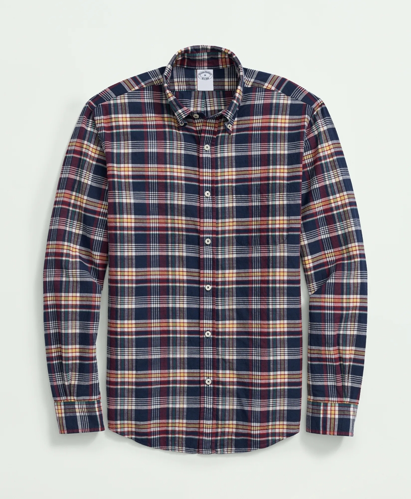 Washed Cotton Madras Button-Down Collar Sport Shirt