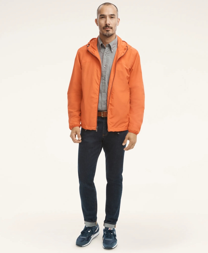 Classic details like elasticized drawcords and an attached hood make the quintessential windbreaker. Brooks Brothers details like a silicone logo patch make it a style must-have.