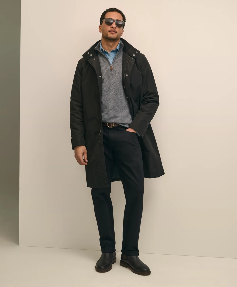 Master inclement weather in our easy raincoat that goes with everything in your wardrobe. It's water resistant and the perfect weight to layer on transitional days.