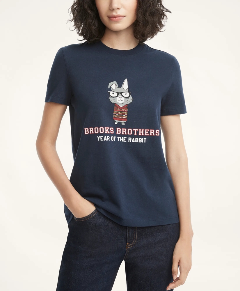 We're honoring peace, prosperity and longevity this Lunar New Year with our playful Year Of The Rabbit graphic on our ultra-soft cotton T-shirt. Additional features include ribbing at the collar and contrast jersey tape at inside of back neck.