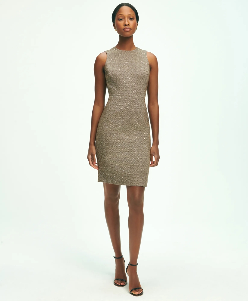 Wool-Blend Sequined Herringbone Shift Dress