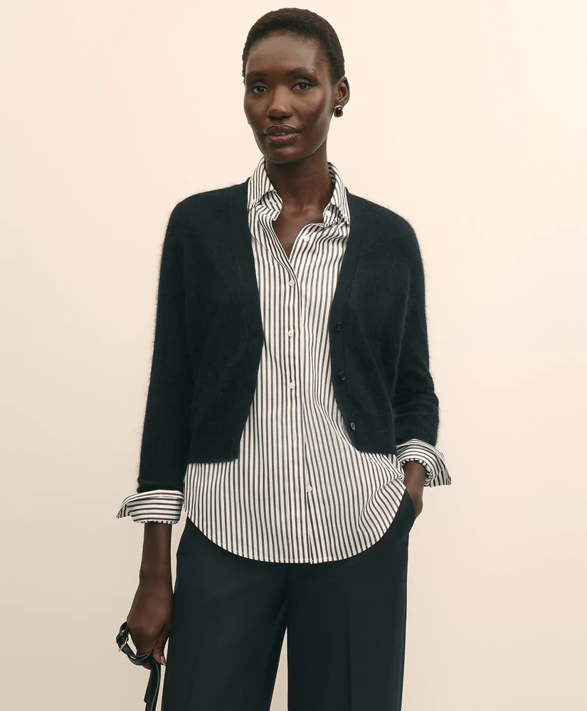 Every wardrobe needs a perfect cropped cardigan. We've elevated this staple piece with ultra warm, soft cashmere and wool yarns. A V-neck makes it an ideal layer over collared shirts, camisoles and crewnecks alike. We added mother-of-pearl buttons for a luxurious finish. Pair with our matching short-sleeve shell for a coordinated look.