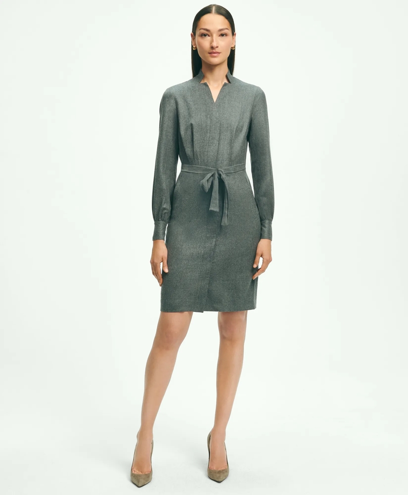 Luxe wool from Italy's renowned Vitale Barberis Canonico mill defines this chic dress that goes from 9AM to 9PM effortlessly. A removable belt and minimalist silhouette offer a modern approach to your classic style.