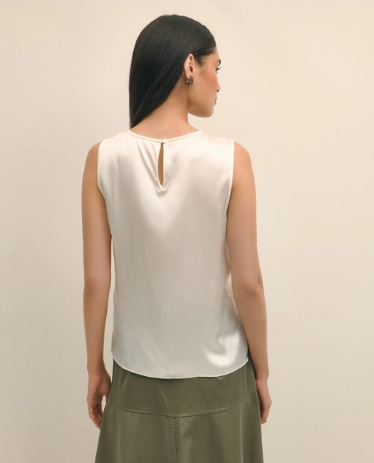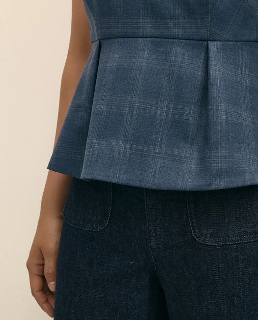 Wool-Silk Blend Sleeveless Plaid Peplum Top